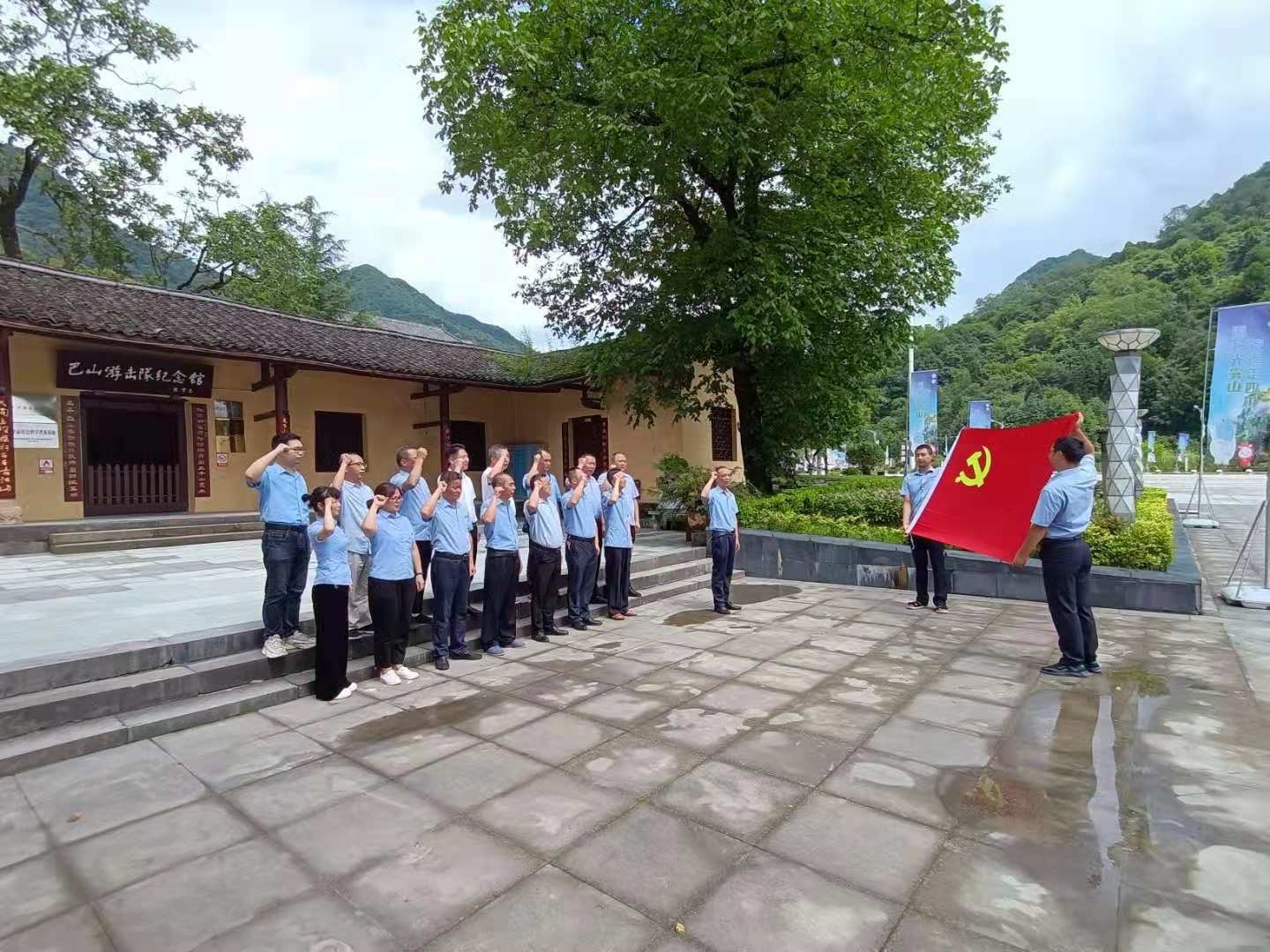 活動(dòng)現(xiàn)場,同志們在講解員的帶領(lǐng)下參觀了巴山游擊隊(duì)紀(jì)念館,展廳內(nèi)每一件展品、每一幅照片、每一段文字記載,生動(dòng)再現(xiàn)了當(dāng)年革命先烈追求民族獨(dú)立和解放而浴血奮戰(zhàn)的英勇歷史。講解員生動(dòng)講述著感人肺腑的紅色故事,讓大家仿佛置身于炮火連天的歲月之中,深深感受到革命先烈們戰(zhàn)斗的艱辛,為黨犧牲的決心,革命必勝的信心。在巴山游擊隊(duì)紀(jì)念館前,公司黨總支書記、董事長李鵬帶領(lǐng)全體黨員重溫入黨誓詞,回顧入黨心路歷程,齊唱國歌,歌頌祖國。