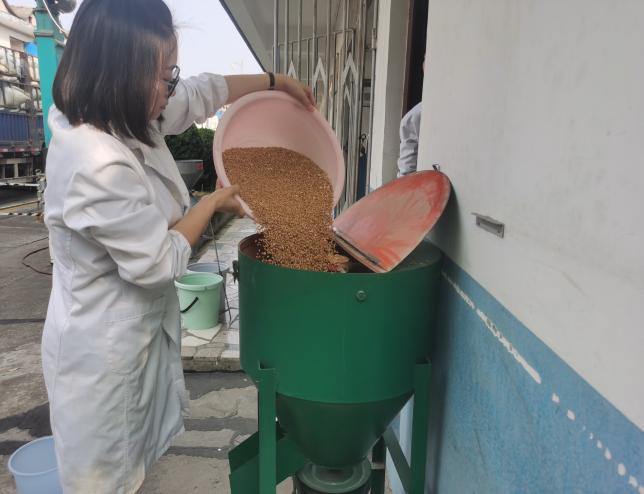 為確保政府儲備糧油輪換任務按時、按質、按量的完成,市糧儲公司一線干部職工每天天剛拂曉就來到糧食收、出作業(yè)現(xiàn)場,開啟一天緊張有序的工作。質檢員作為糧食質量安全的守門員,他們從扦樣、分樣、送樣到檢測,從糧食常規(guī)質量指標、儲存品質指標到食品安全指標的檢測均嚴格按操作流程,高質量完成每一份樣品、每一項指標的檢測任務,保障了入庫糧食質量合格;倉儲管理員堅守卸糧現(xiàn)場,嚴格抽查入庫糧食質量,盡管汗
