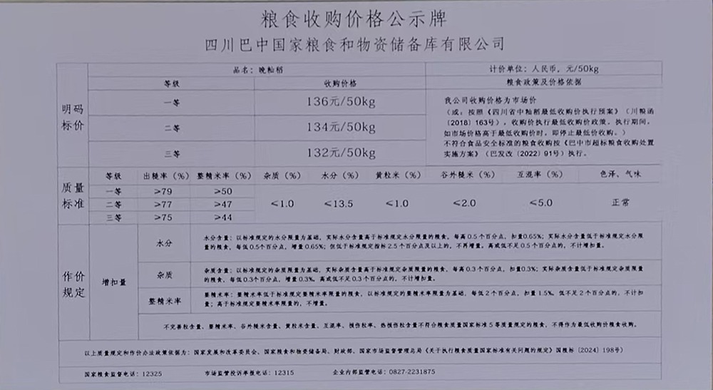 為認(rèn)真貫徹國家糧食收購政策,全面落實(shí)省、市決策部署,踐行糧食安全黨政同責(zé)責(zé)任,充分發(fā)揮行業(yè)主體責(zé)任,做好秋糧收購工作,切實(shí)保護(hù)種糧農(nóng)民利益?,F(xiàn)將四川巴中國家糧食和物資儲備庫有限公司2025年秋糧收購相關(guān)信息公示如下: